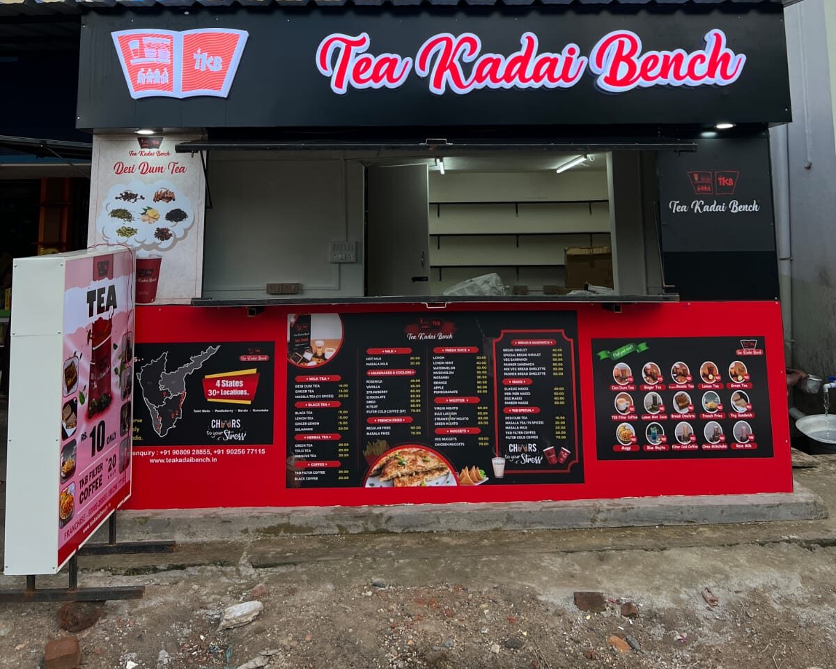 With the great success of the first shop and astonishing reaction for the new nourishment assortments, we, the group Tea Kadai Bench focuses onto be a prevailing player in the food and beverage industry. The reaction to the drinks and recipes has been truly overwhelming and we are enchanted to expand the brand to each niche and corner of the nation. We dream to partner with individuals/teams who’s are confident enough to set out a retail shop and move by the Tea Kadai Bench’s ideology of giving the clients with hygiene, one of a kind and tasty drinks.